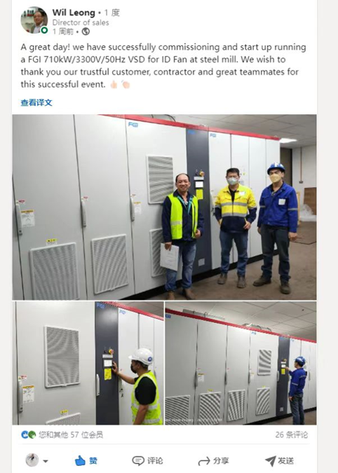 We successfully got the inverter project for induced draft (ID) fan at a steel mill with our Malaysian partner after nearly 2 years of continuous communication. After competing with many domestic and international manufacturers, we finally won the trust of end-users with the high quality of products, professional services, and good reputation in the industry.